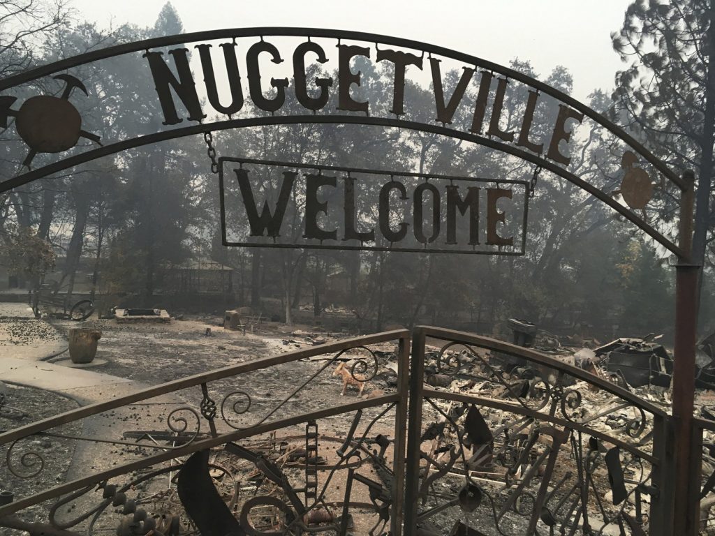 FILE – This Wednesday, Nov. 14, 2018 photo shows the remains of the Gold Nugget Museum, which was totally demolished by the Camp Fire, in Paradise, Calif. Paradise literally went up in smoke in the deadliest, most destructive wildfire in California history. And memories are all that’s left for many of the survivors. They recall a friendly place where the pace was relaxed, where families put down roots and visitors opted to stay (AP Photo/Martha Mendoza, File)