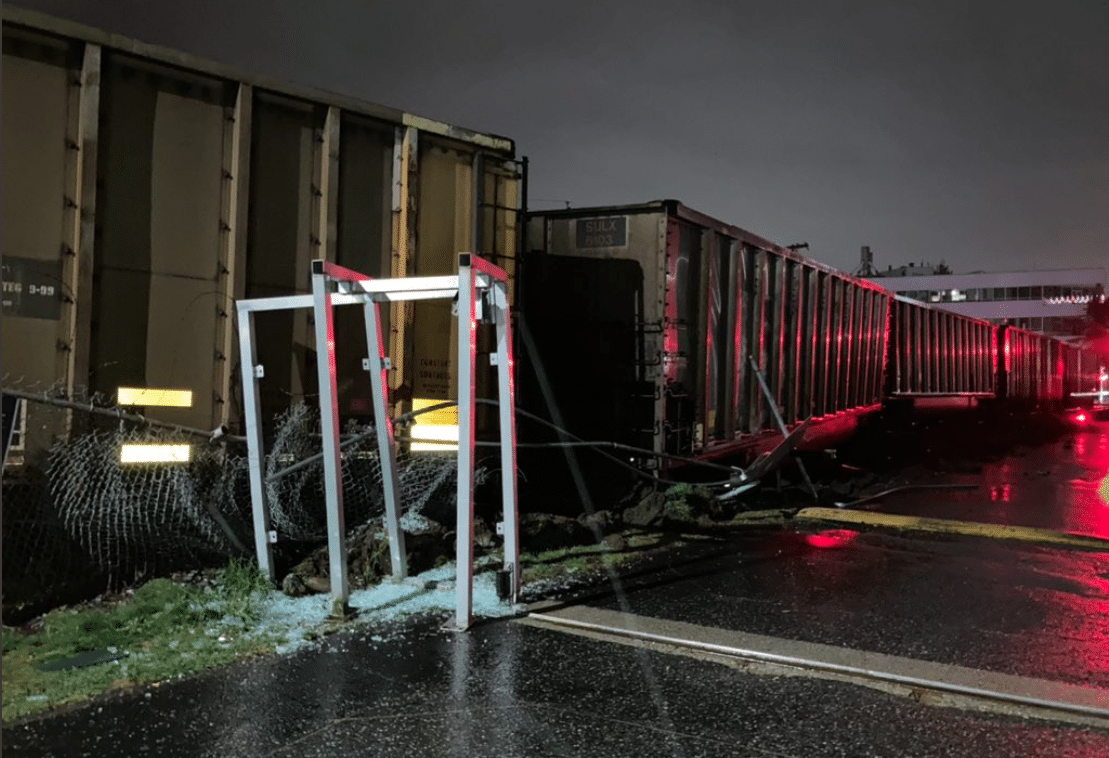 A train has derailed in North Vancouver affecting two CN train railcars. According to CN, railcars contain solid sulfur, and preliminary information suggests there was a leak. No danger to public safety at this point, cause of the derailment is under investigation. @CityNewsVAN