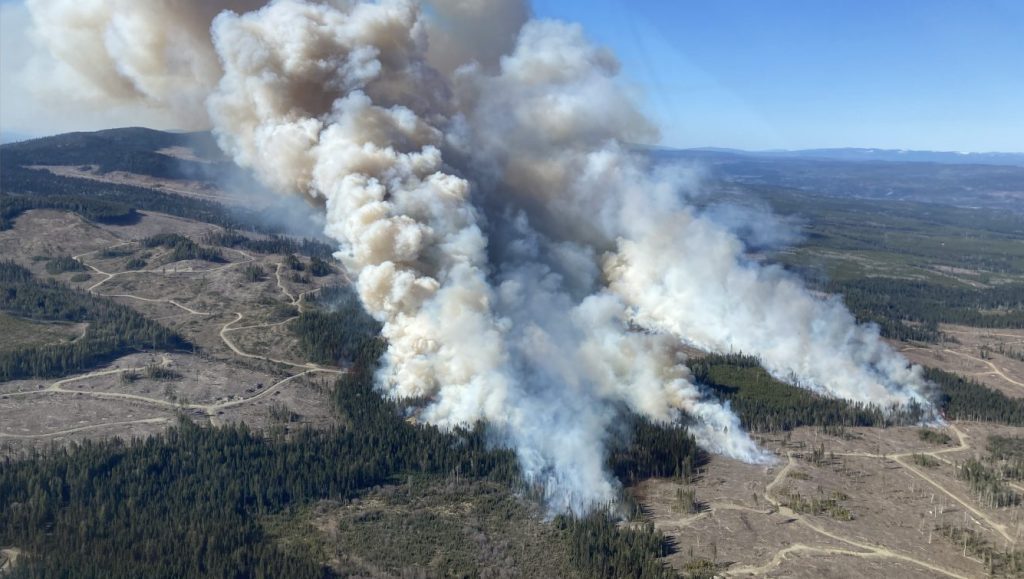 On Saturday, the Burgess Creek fire was seen sending a large plume of smoke into the air — visible from Quesnel, Highway 97, and Williams Lake, firefighters say.
