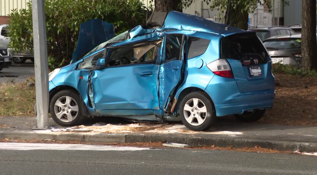 Around 7:30 a.m. on Oct. 23, officers were called to the scene of the crash at Alderbridge Way near No. 3 Road, where they found a damaged light blue Honda Fit.
